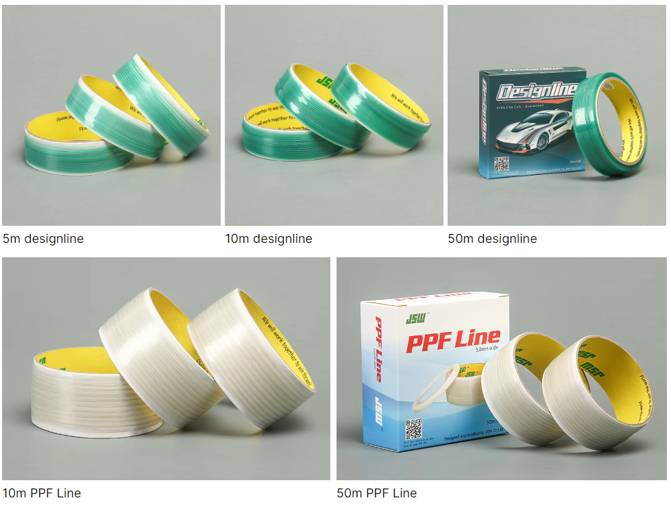 Designline is a very flesible self-adhesive tape. The back of the tape with a high strength thin lines. When the thin line is separate out,the designline will become a powerful tool for cutting car wrapping powerful tool that can perfec tly cut the car wrapping film.It is mainly applied to the design of car patting, which can be adjust various directions. The product is as sharp as the blade without any burrs.